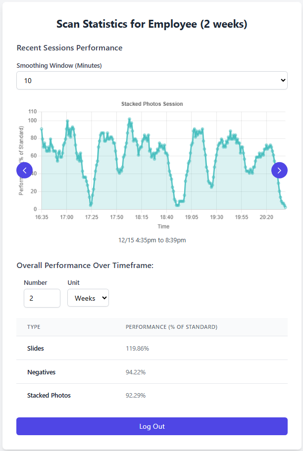 Our profit is determined by our scanning speed. To communicate standards and promote efficiency I built a custom tracking and reporting suite.